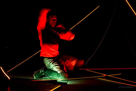 Quinze tiges lumineuse motorisé, trois performeurs.